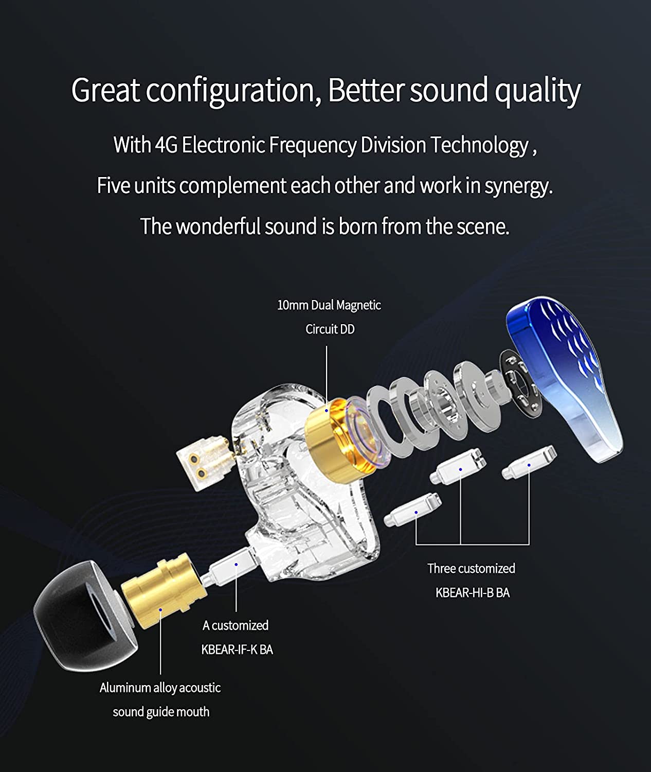 CCA C12 5BA+1DD in Ear Monitor,HiFi Bass in Ear Earphone, IEM Wired Headphones, HiFi Stereo Sound Earphones Noise Cancelling Ear Buds with 6 Balanced Armature Drivers 0.75mm 2pins Cable(No Mic,Gold)